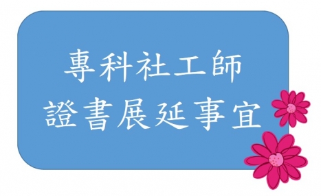 依據105年6月7日衛部救字第1051361734號令修正《專科社會工作師分科甄審及接受繼續教育辦法》第14條規定:「…專科社會工作師於證書有效期限內,實際從事專科社會工作二年以上,並參加下列各款繼續教育課程,其積分合計達一百五十點以上者,得申請展延專科社會工作師證書有效期限…」;另依第18條規定「專科社會工作師申請得於專科社會工作師證書有效期限屆滿前六個月內,檢具符合第14條第2項所訂展延條件之證明文件,並繳納證書展延查核費,向中央主管機關申請展延專科社會工作師證書有效期限。」
